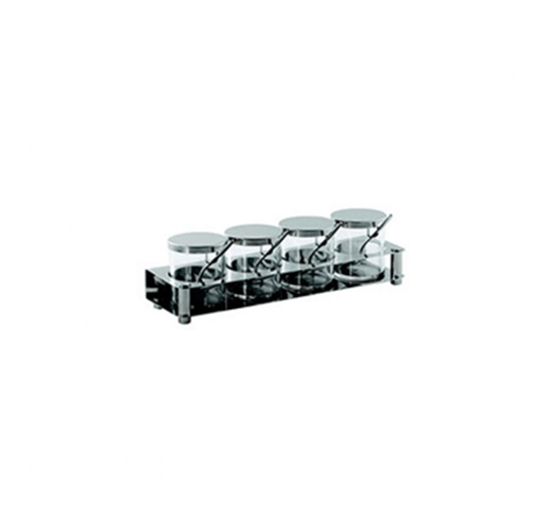 CONDIMENT SET S/STEEL INCLUDES: 4 JARS + SPOONS +TRAY 360MM X 110MM X 107MM 1.47 KG